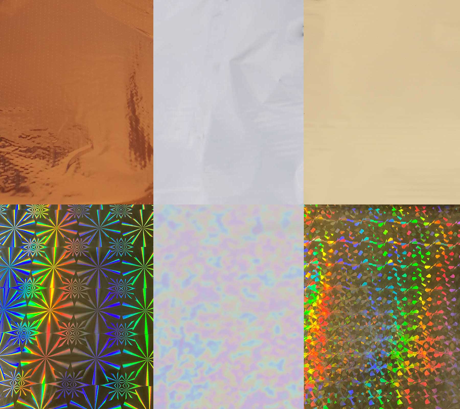 Transferfolien Mix-Set: Gold, Silber, Bronze, Interferenz & Hologramm